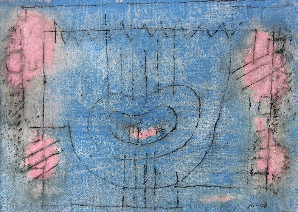 Oelpastell/Tusche auf Malkarton/Leinen