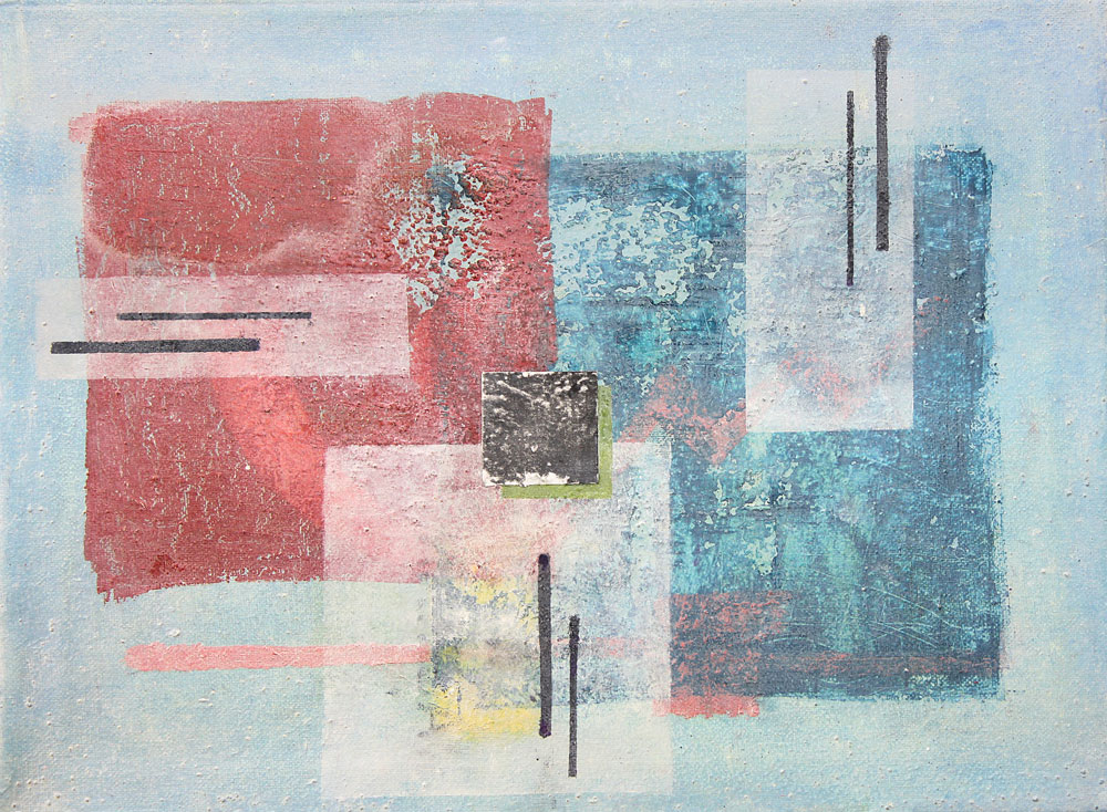 Collage/Acryl/Tusche auf Hartfaserplatte