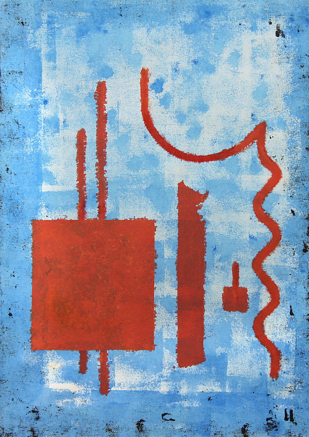 Acryl auf Asphaltlack/Oelkreide auf Papier