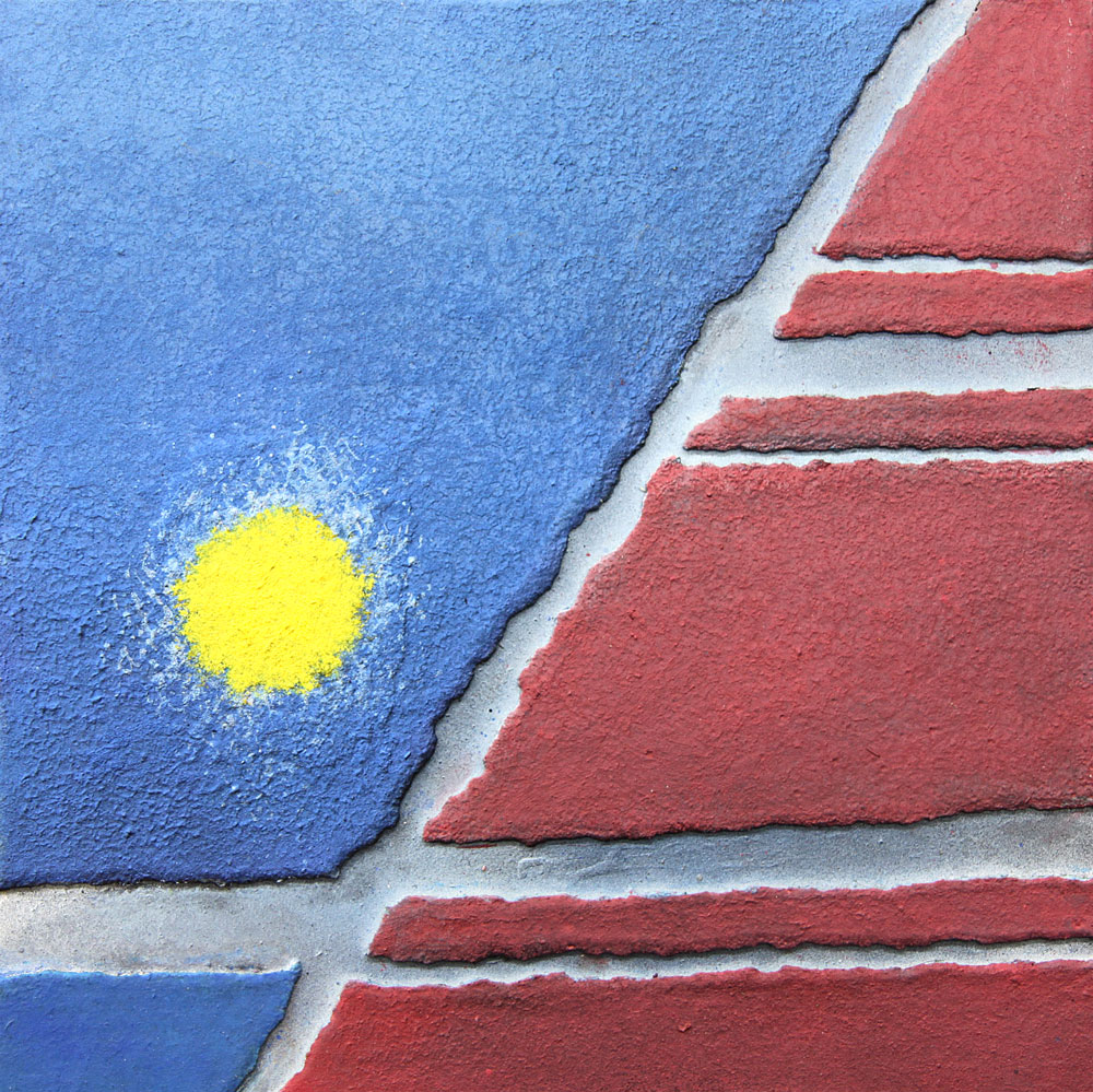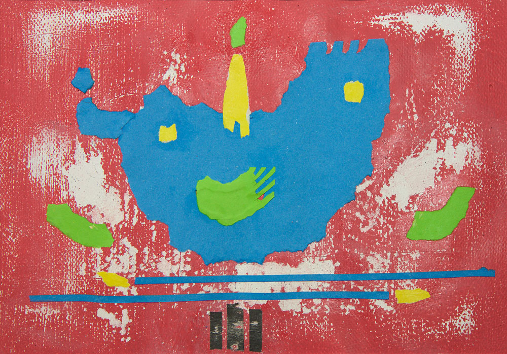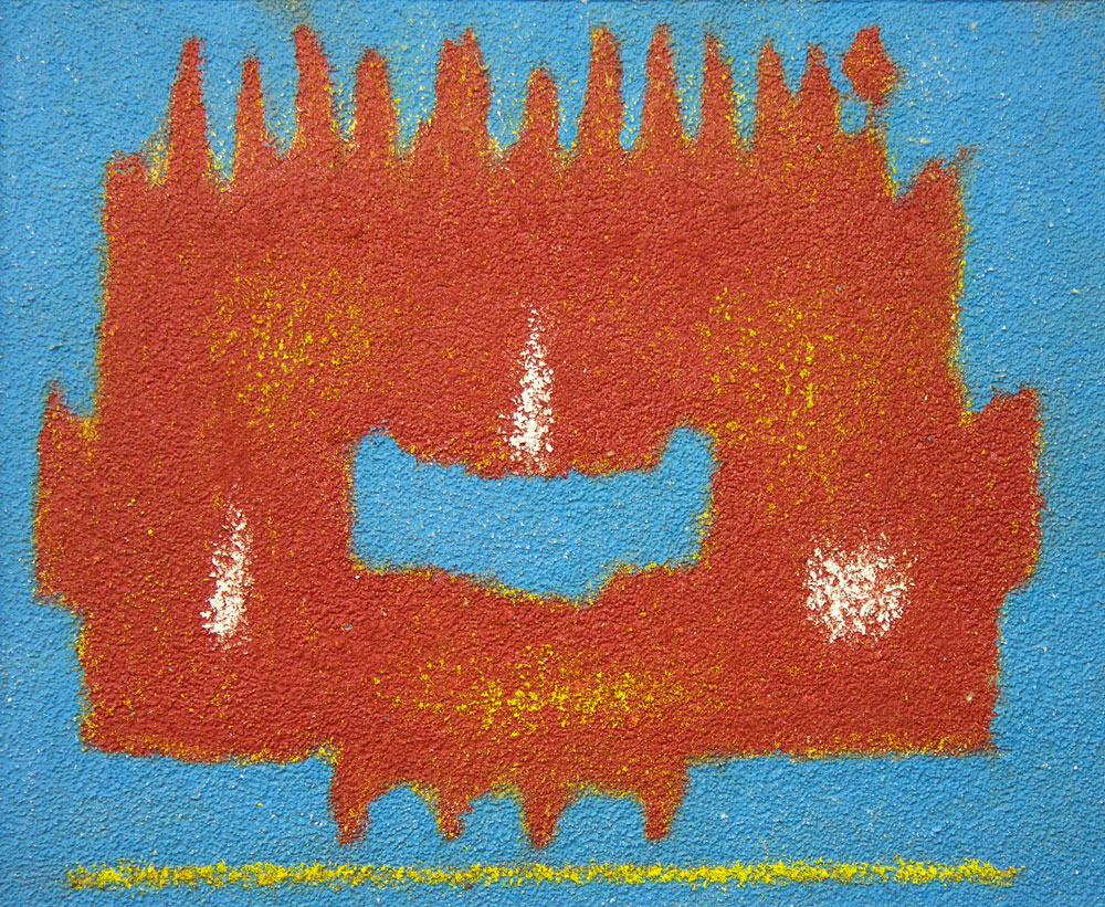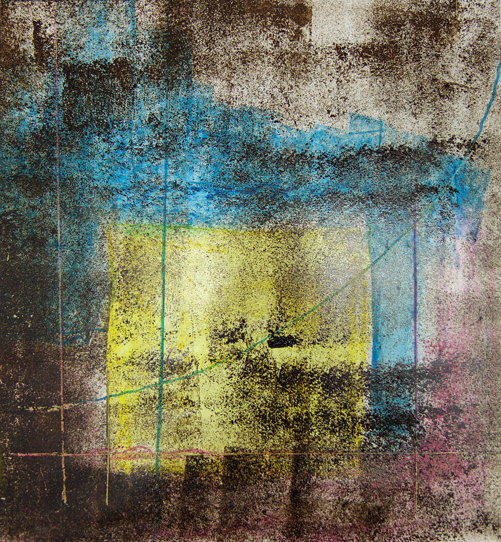 Acryl/Bitumenpappe/Farbstift auf Hartfaserplatte