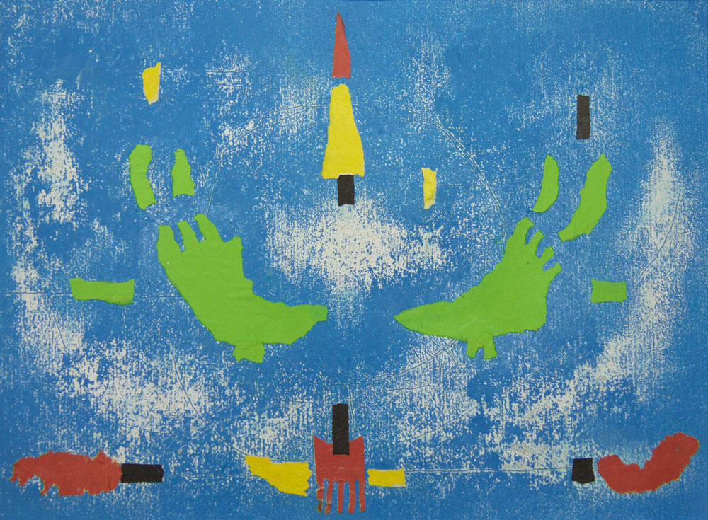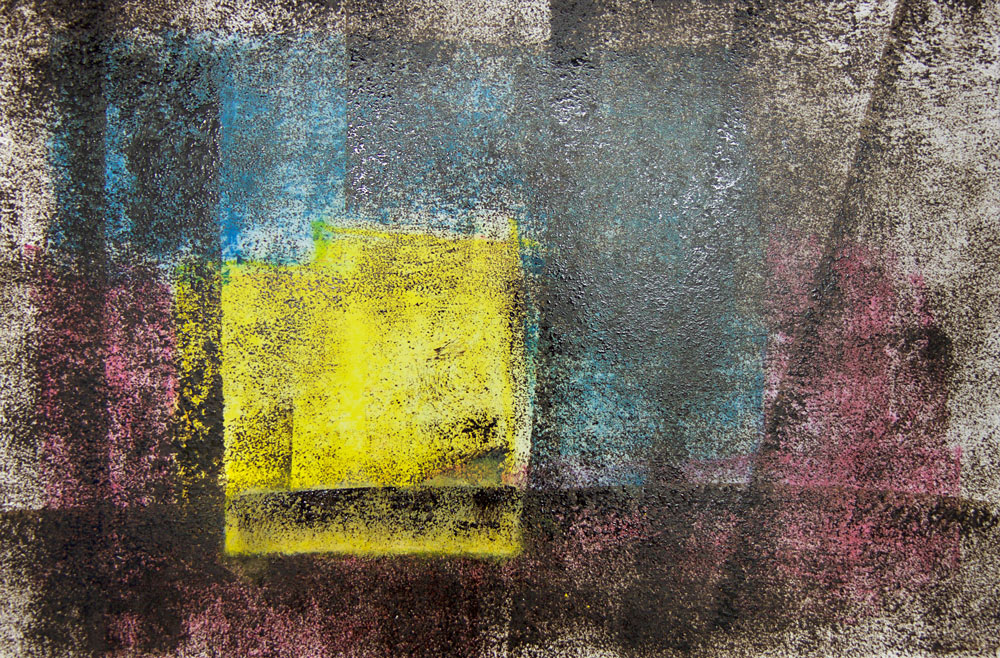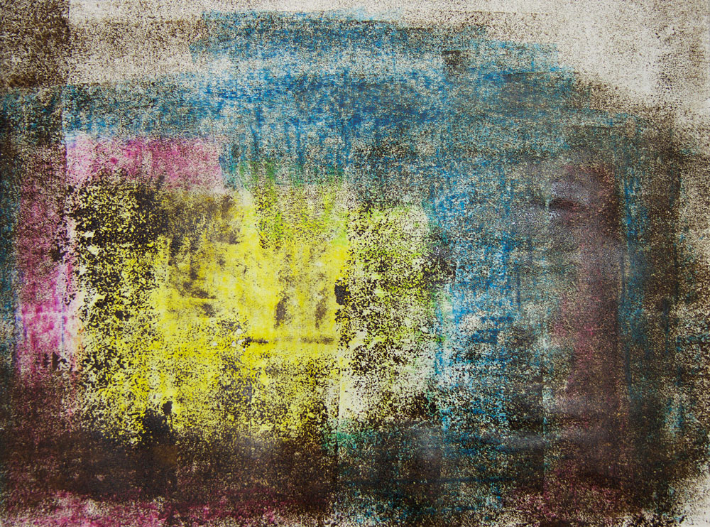 Monotypie Acryl/Oel auf Asphaltlack auf Papier